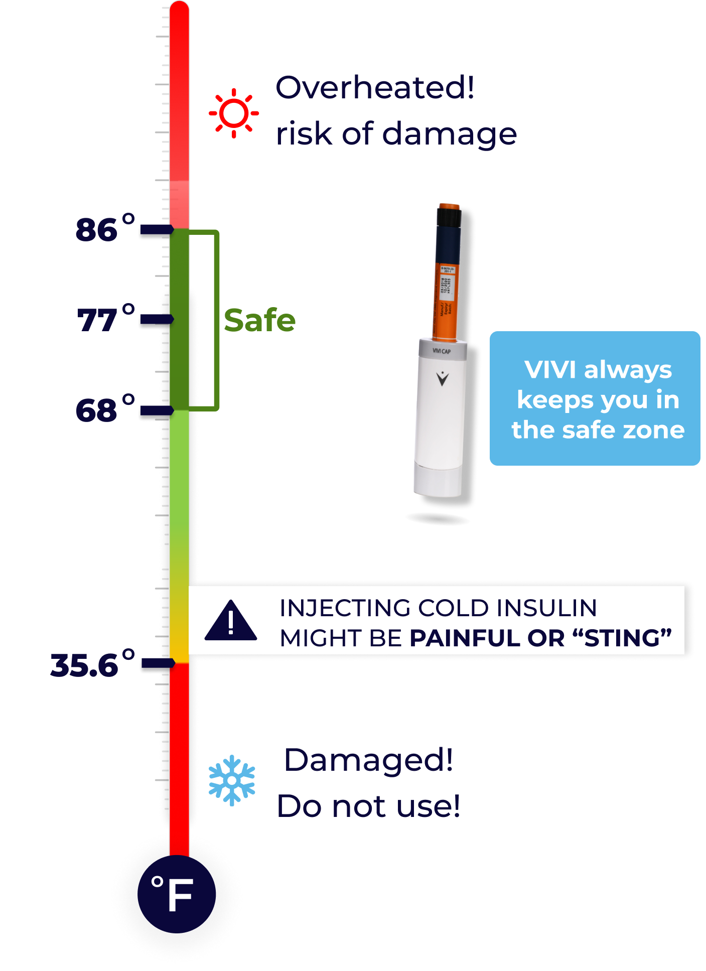 VIVI Cap protects you and your insulin from damage due to unsafe temperatures and direct light, every day for years.