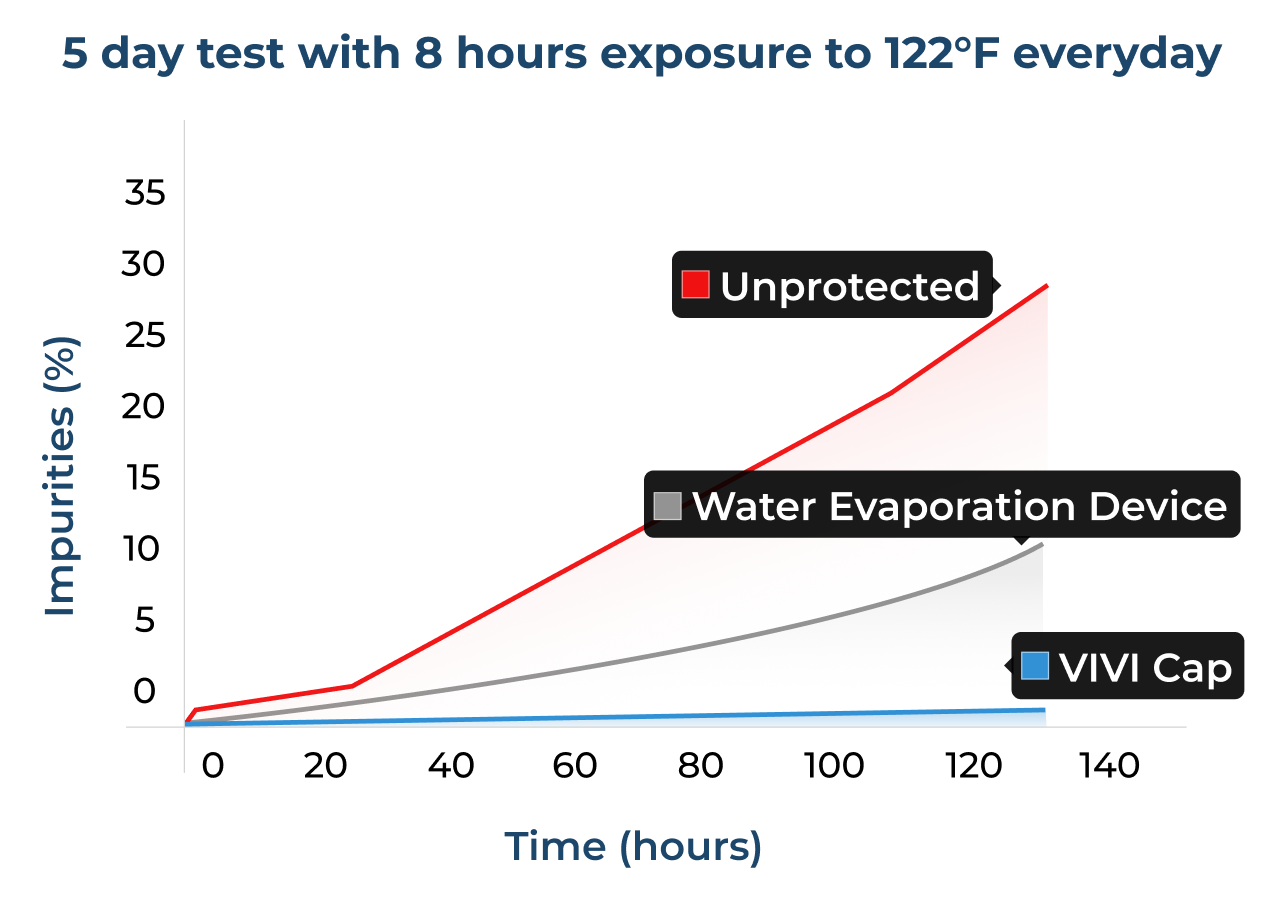 VIVI Cap is scientifically proven to protect insulin when exposed to high heat over 5 days. See the chart comparing insulin potency with and without VIVI Cap