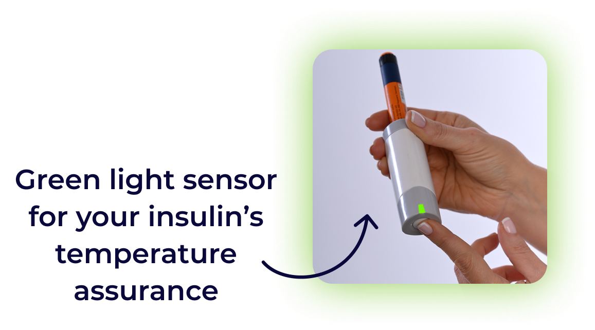 " ...simply clicks onto an insulin pen instead of the cap. No ice packs or preparation necessary. "