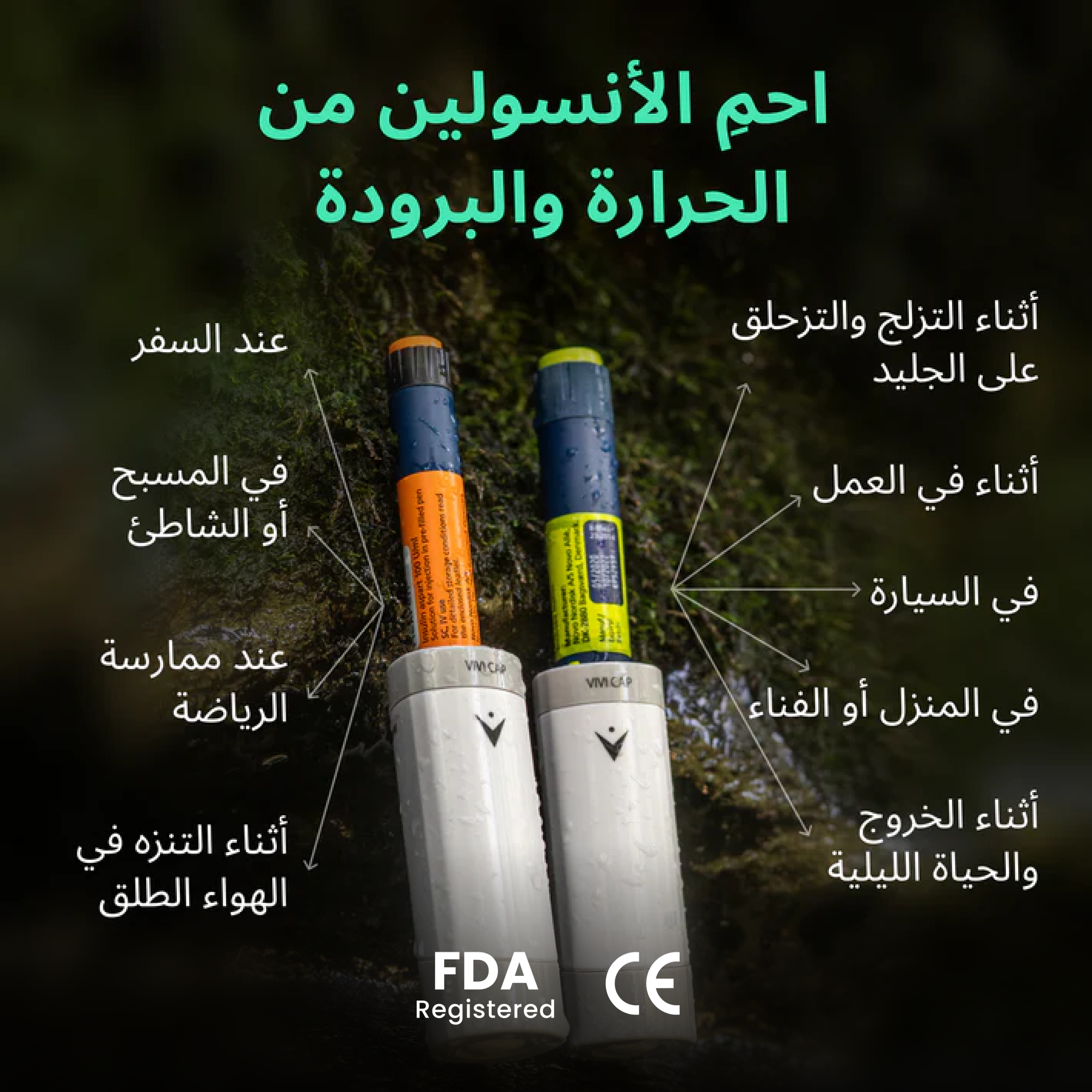 يحميك غطاء VIVI Cap ويحمي الأنسولين الخاص بك من التلف بسبب درجات الحرارة غير الآمنة والضوء المباشر، كل يوم لسنوات.