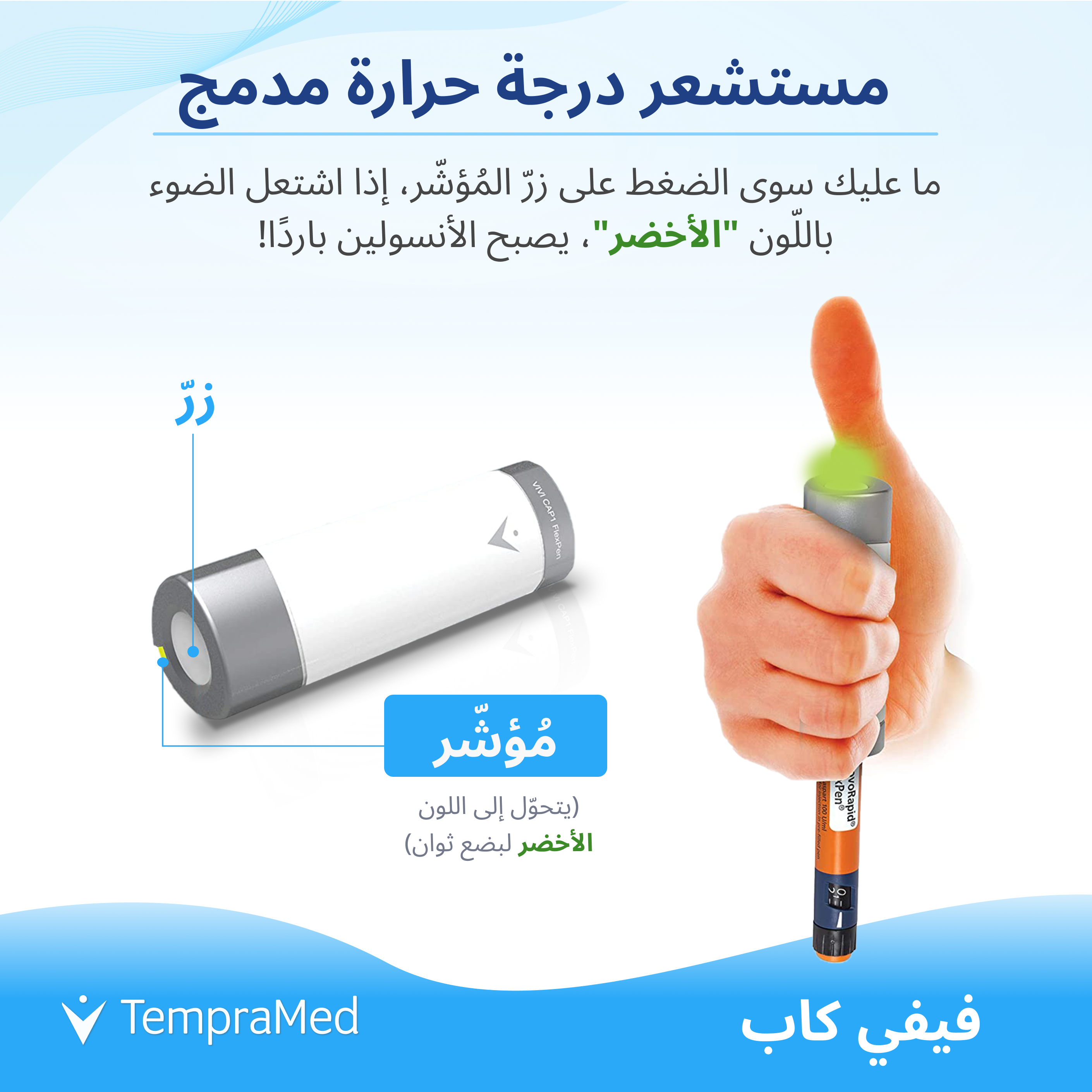 لكل قلم أنسولين جديد تستخدمه، يمكنك استبدال غطاء القلم بغطاء VIVI Cap - للحماية الفورية.
